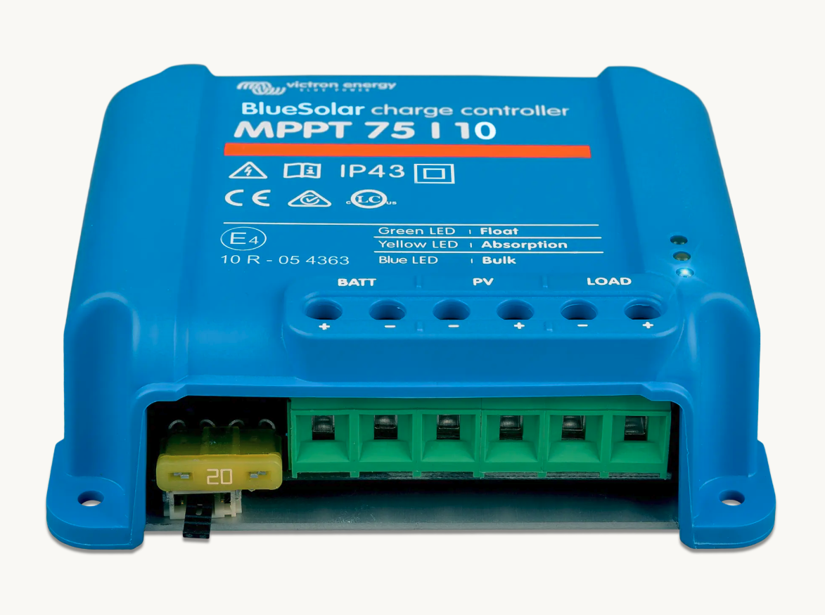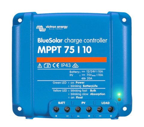 Victron Energy BlueSolar MPPT 75/10 Solar Charge Controller. For 12V and 24V battery systems. Max 75Voc and 10A charge current