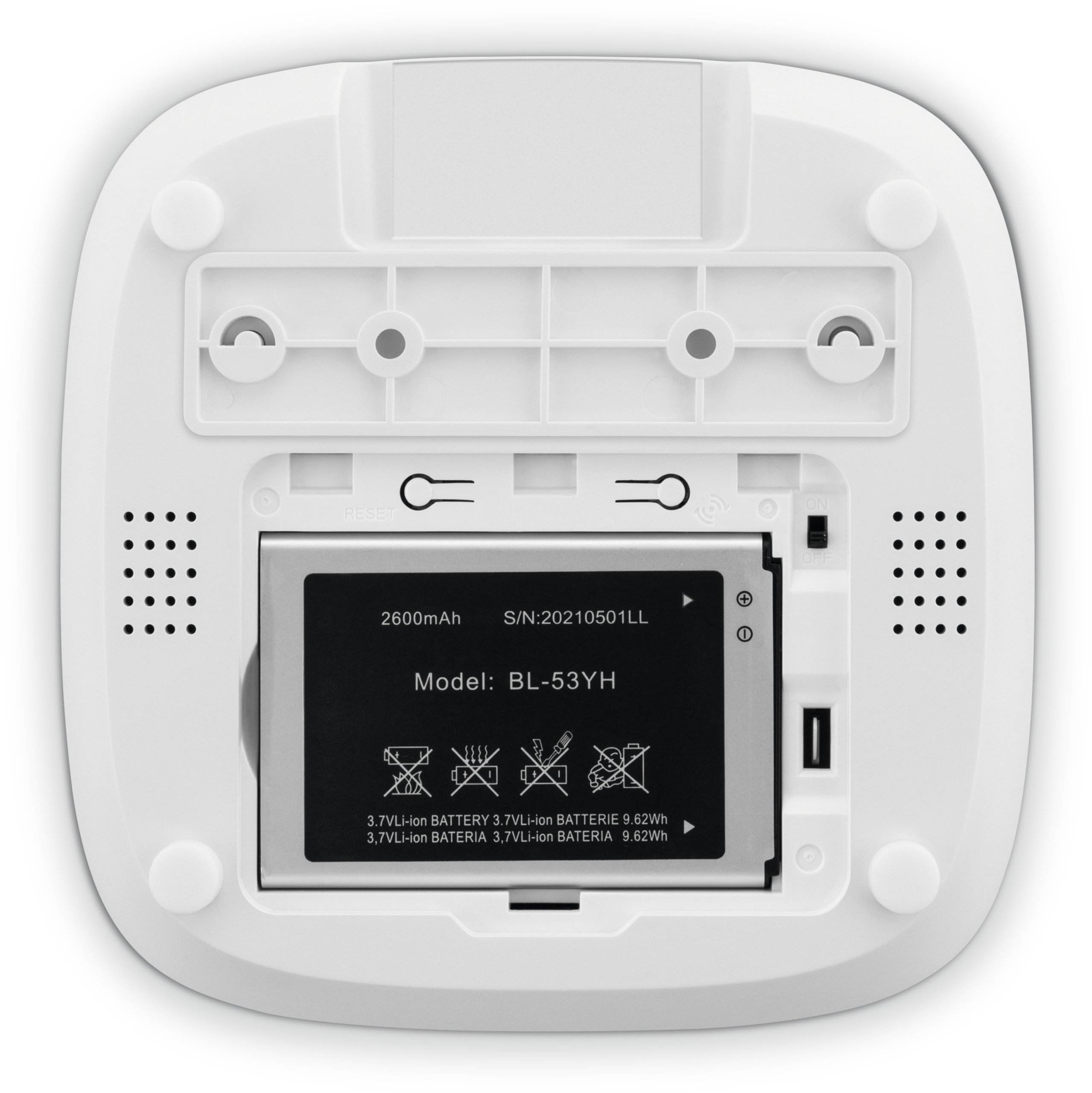The central unit can be integrated into the home network via LAN or WLAN. The device wirelessly communicates with various elements of the TECHNISMART system and controls them. In addition, an alarm siren is already integrated in the control panel, with a volume of 100 decibels, which warns the inhabitants of the house and can also acoustically scare away uninvited guests.