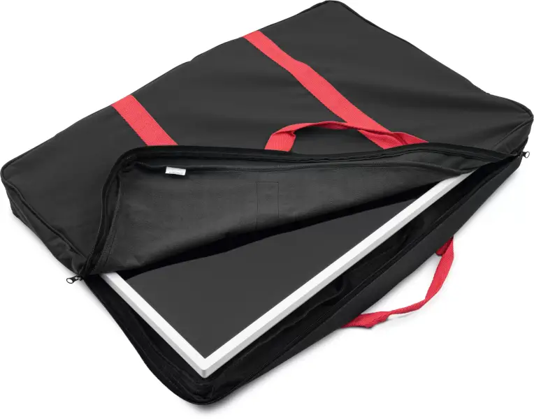 And in connection with a DVB-T2 antenna, television becomes completely cable-free. The device, which weighs just over six kilograms, can be quickly stowed away in the bag supplied and can be set up again even more quickly on site. The stand is placed on the back of the device to save space.
