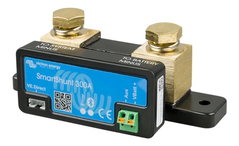 The SmartShunt is an all in one battery monitor, only without a display. Your phone acts as the display. The SmartShunt connects via Bluetooth to the VictronConnect App on your phone (or tablet) and you can conveniently read out all monitored battery parameters, like state of charge, time to go, historical information and much more. In addition, the SmartShunt can be connected and be read by a GX device. Connection to the GX device is made via a VE.Direct cable.